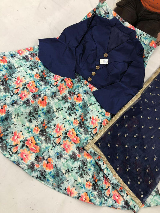 Modern Satin Lehenga with Florals & Bell SleevesRegular price $157.99 USDRegular priceUnit price / per-