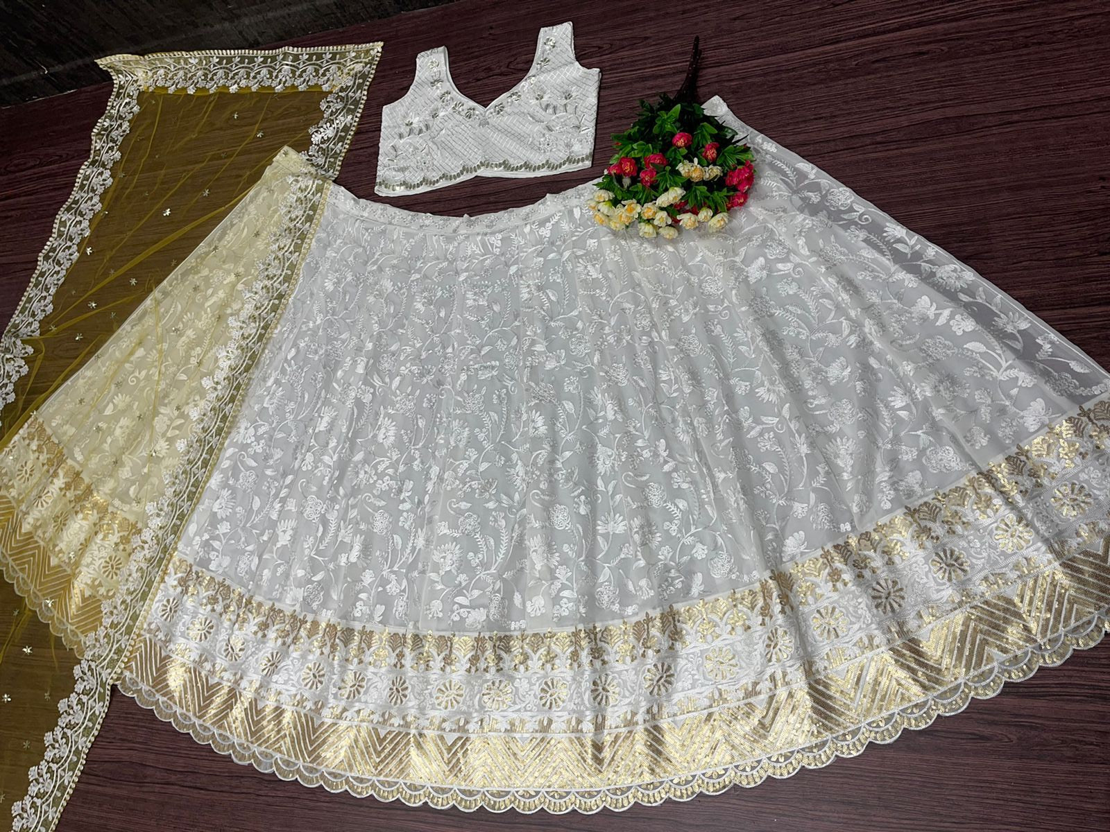 White Lehenga with Contrast Dupatta